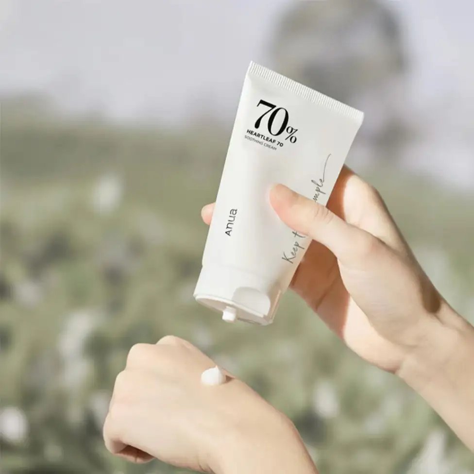 The Anua Heartleaf 70% Soothing Cream offers calming, comfortable hydration for sensitive or easily irritated skin types. With a high concentration of heartleaf extract, it helps reduce visible redness and soothe discomfort caused by dryness or environmental stress. As a result, the skin feels calmer, balanced, and comfortably hydrated throughout the day.